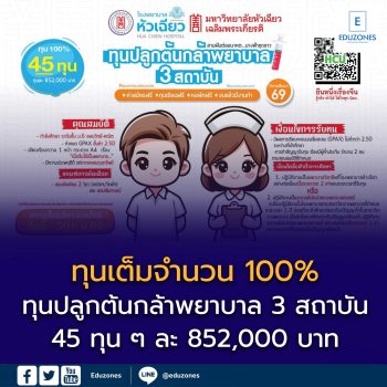 EZ Webmaster September 11, 2025 ทุนการศึกษาพยาบาลศาสตรบัณฑิต เต็มจำนวน 100% ทุนปลูกต้นกล้าพยาบาล 3 สถาบัน EZ Webmaster September 11, 2025 📣 ทุนการศึกษาพยาบาลศาสตรบัณฑิต เต็มจำนวน 100% ทุนปลูกต้นกล้าพยาบาล 3 สถาบันโดยมูลนิธิป่อเต็กตึ๊ง และโรงพยาบาลหัวเฉียว ร่วมกับมหาวิทยาลัยหัวเฉียวเฉลิมพระเกียรติ 🎓 สนับสนุนตลอดหลักสูตร 4 ปี จำนวน 45 ทุน ๆ ละ 852,000 บาท🏠 ฟรี! หอพักนักศึกษา 📌 สำหรับนักเรียนที่เรียนดี แต่ขาดแคลนทุนทรัพย์📍 เมื่อสำเร็จการศึกษา สามารถเลือกปฏิบัติงานที่โรงพยาบาลหัวเฉียว หรือเป็นอาจารย์ประจำคณะพยาบาลศาสตร์ตามเงื่อนไข ✅ เกรดเฉลี่ยไม่ต่ำกว่า 2.50✅ กำลังศึกษาอยู่… Continue Reading