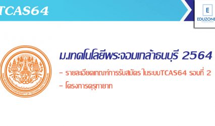 นักเรียนนักศึกษา #TCAS64 พระจอมเกล้าธนบุรี เปิดรับนศ.ป.ตรี รอบที่ 2 โครงการคุรุทายาท ตั้งแต่วันที่ 22 ก.พ. – 22 มี.ค. 64 EZ Webmaster January 18, 2021 มหาวิทยาลัยเทคโนโลยีพระจอมเกล้าธนบุรี เปิดรับสมัครคัดเลือกบุคคลเพื่อเข้าศึกษาต่อในระดับปริญญาตรี รอบที่ 2 โครงการคุรุทายาท ประจำปีการศึกษา 2564 โดยเปิดรับสมัครตั้งแต่วันที่ 22 กุมภาพันธ์ – 22 มีนาคม 2564 จำนวนรับ…