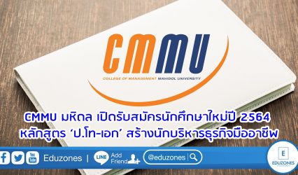 นักศึกษา CMMU มหิดล เปิดรับสมัครนักศึกษาใหม่ปี 2564 หลักสูตร ‘ป.โท-เอก’ สร้างนักบริหารธุรกิจมืออาชีพ EZ Webmaster January 14, 2021 CMMU เผยผู้สนใจเข้าร่วมกิจกรรม Open House Live 2021 แน่นขนัด พร้อมเปิดรับนักศึกษาใหม่ระดับปริญญาโทจนถึงวันที่ 25 ม.ค. 2564 มั่นใจวิสัยทัศน์วิชาการและมาตรฐานหลักสูตรด้านบริหารธุรกิจชั้นนำ อัดแน่นด้วยคุณภาพอาจารย์การันตีรางวัลระดับโลก เครือข่ายสถาบันนานาชาติ และพันธมิตรภาคเอกชน มอง…