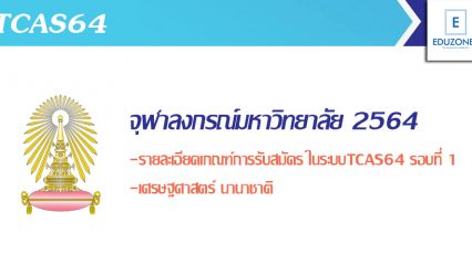 นักเรียนนักศึกษา #TCAS64 ภาษาและวัฒนธรรม-นานาชาติ จุฬา เปิดรับสมัครนศ.ป.ตรี รอบที่ 1 Early Admission ตั้งแต่วันที่ 21 ธ.ค. 63 – 18 ม.ค. 64 EZ Webmaster January 12, 2021 สาขาวิชาภาษาและวัฒนธรรม คณะอักษรศาสตร์ หลักสูตรนานาชาติ จุฬาลงกรณ์มหาวิทยาลัย เปิดรับสมัครคัดเลือกบุคคลเพื่อเข้าศึกษาต่อระดับปริญญาตรี รอบที่ 1 Early Admission ประจำปีการศึกษา 2564 โดยจะเปิดรับสมัครตั้งแต่วันที่ 21 ธันวาคม 2563 –…