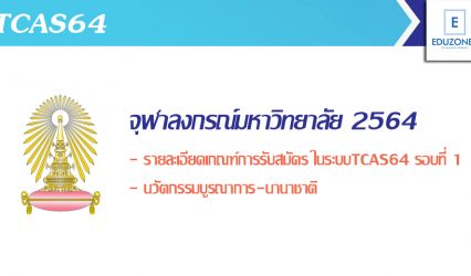 นักเรียนนักศึกษา #TCAS64 นวัตกรรมบูรณาการ-นานาชาติ จุฬา เปิดรับสมัครนศ.ป.ตรี รอบที่ 1 Early Admission ตั้งแต่วันที่ 21 ธ.ค. 63 – 18 ม.ค. 64 EZ Webmaster January 11, 2021 หลักสูตรศิลปศาสตร์และวิทยาศาสตรบัณฑิต สาขาวิชานวัตกรรมบูรณาการ หลักสูตรนานาชาติ สถาบันนวัตกรรมบูรณาการแห่งจุฬาลงกรณ์มหาวิทยาลัย เปิดรับสมัครคัดเลือกบุคคลเพื่อเข้าศึกษาต่อระดับปริญญาตรี รอบที่ 1 Early Admission ประจำปีการศึกษา 2564 โดยจะเปิดรับสมัครตั้งแต่วันที่ 21 ธันวาคม 2563 –…