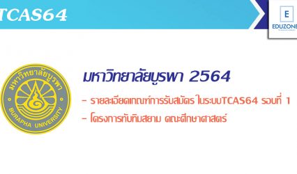 นักเรียนนักศึกษา #TCAS64 โครงการทับทิมสยาม ม.บูรพา เปิดรับสมัครนศ.ป.ตรี รอบที่ 1 ตั้งแต่วันที่ 5-13 ม.ค.นี้ EZ Webmaster January 11, 2021 คณะศึกษาศาสตร์ มหาวิทยาลัยบูรพา เปิดรับสมัครคัดเลือกบุคคลเพื่อเข้าศึกษาต่อระดับปริญญาตรี รอบที่ 1 โครงการทับทิมสยาม ประจำปีการศึกษา 2564 โดยเปิดรับสมัครตั้งแต่วันที่ 5-13 มกราคม 2564 สาขาที่เปิดรับสมัคร -ศิลปศึกษา -พลศึกษา…