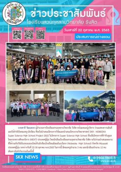 ผู้อํานวยการโรงเรียนสวนกุหลาบวิทยาลัย รังสิต พร้อมคณะผู้บริหาร ร่วมแสดงความยินดี คณะครู-นักเรียน ไปนําเสนอโครงการวิจัยและโครงงานวิทยาศาสตร์ SKR – NOBEOKA Super Science High School Project 2022 tui sakrapee October 27, 2022 นายชาลี วัฒนเขจร ผู้อํานวยการโรงเรียนสวนกุหลาบวิทยาลัย รังสิต พร้อมคณะผู้บริหาร ร่วมแสดงความยินดี และให้กําลังใจคณะครู-นักเรียน ที่จะไปนําเสนอโครงการวิจัยและนําเสนอโครงงานวิทยาศาสตร์ SKR – NOBEOKA Super Science High School Project 2022 ในโครงการ Super Science High School ซึ่งเป็นโครงการที่กํากับดูแล โดยกระทรวงศึกษาธิการ (MEXT) ประเทศญี่ปุ่น โดยนักเรียนโรงเรียนสวนกุหลาบวิทยาลัย รังสิต จะไปร่วมนําเสนอผลงาน ที่ได้ร่วมกันวิจัยในระบบออนไลน์กับนักเรียนโรงเรียนมัธยมโนเบโอกะ (Nobeoka High School) จังหวัด Miyazaki ประเทศญี่ปุ่น ระหว่างวันที่ 22-30 ตุลาคม พ.ศ.2565 ในการนี้ มีคณะครูจํานวน… Continue Reading