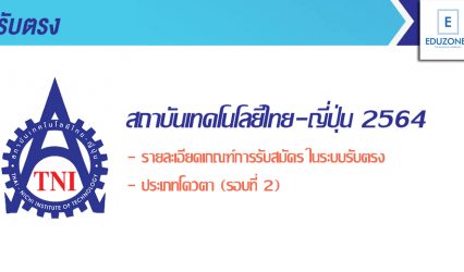 นักเรียนนักศึกษา #รับตรง 64 สถาบันเทคโนโลยีไทย-ญี่ปุ่น เปิดรับสมัครนศ.ป.ตรี ประเภทโควตา (รอบที่ 2) ตั้งแต่วันที่ 1 พ.ย. 63 – 31 มี.ค. 64 EZ Webmaster January 7, 2021 สถาบันเทคโนโลยีไทย-ญี่ปุ่น เปิดรับสมัครนักเรียนที่กำลังศึกษาชั้นมัธยมศึกษาปีที่ 6 จากโรงเรียนมัธยมศึกษาของรัฐบาลหรือเอกชน เพื่อคัดเลือกเข้าศึกษาระดับปริญญาตรี ประเภทโควตา รอบที่ 2 โดยจะเปิดรับสมัครตั้งแต่วันที่ 1 พฤศจิกายน 2563 – 31 มีนาคม 2564…