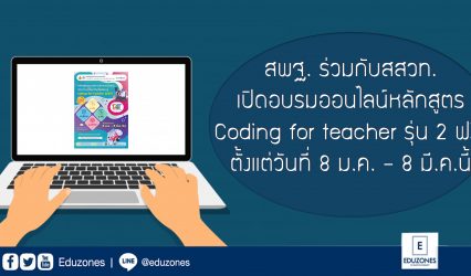 ครู-อาจารย์ สพฐ. ร่วมกับสสวท. เปิดอบรมออนไลน์หลักสูตร Coding for teacher รุ่น 2 ฟรี! ตั้งแต่วันที่ 8 ม.ค. – 8 มี.ค.นี้ EZ Webmaster January 5, 2021 สำนักงานคณะกรรมการการศึกษาขั้นพื้นฐาน (สพฐ.) ร่วมกับสถาบันส่งเสริมการสอนวิทยาศาสตร์และเทคโนโลยี (สสวท.)ได้จัดอบรมออนไลน์ “หลักสูตรการจัดการเรียนรู้วิทยาการคำนวณสำหรับครู (C4T) รุ่น 2” และ “หลักสูตรการจัดการเรียนรู้วิทยาการคำนวณสำหรับครูขั้นสูง (C4T Plus) รุ่น 2” ให้แก่ครูระดับประถมศึกษาและระดับมัธยมศึกษาที่รับผิดชอบสอนรายวิชาวิทยาการคำนวณหรือครูที่รับผิดชอบสอนในรายวิชาอื่น ๆ…