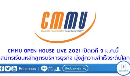 นักเรียน CMMU OPEN HOUSE LIVE 2021 เปิดเวที 9 ม.ค.นี้ สมัครเรียนหลักสูตรบริหารธุรกิจ มุ่งสู่ความสำเร็จระดับโลก EZ Webmaster January 5, 2021 CMMU ขอเชิญร่วมงาน CMMU OPEN HOUSE LIVE 2021 วันที่ 9 ม.ค. 2564 เปิดเวทีออนไลน์แนะนำหลักสูตรบริหารธุรกิจชั้นนำทั้งไทย-อินเตอร์ ระดับปริญญาโทจนถึงปริญญาเอก วันเดียวเท่านั้น รับส่วนลดค่าสมัครเรียน และเพิ่มโอกาสศึกษาต่อในสถาบันระดับโลก ผู้ช่วยศาสตราจารย์ ดร.ดวงพร…
