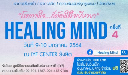 Blog Healing Mind “โรคทางใจ…ต้องใช้ใจเยียวยา” EZ Webmaster January 4, 2021 มูลนิธิเยาวชนสัมพันธ์นานาชาติ (IYF) ประจำประเทศไทย กำหนดจัดค่าย Healing Mind “โรคทางใจ…ต้องใช้ใจเยียวยา” ในวันที่ 9-10 มกราคม 2564 เป็นเวลา 2 วัน 1 คืน…