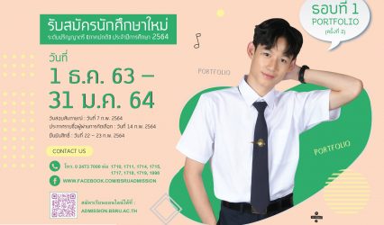 นักเรียน #เรียนต่อที่ไหนดี มหาวิทยาลัยราชภัฏบ้านสมเด็จเจ้าพระยา รับสมัครนักศึกษาใหม่ ระดับปริญญาตรี (ภาคปกติ) ประจำปีการศึกษา 2564 รอบที่ 1 Portfolio (ครั้งที่ 2) หรือ TCAS64 EZ Webmaster January 4, 2021 มหาวิทยาลัยราชภัฏบ้านสมเด็จเจ้าพระยา รับสมัครนักศึกษาใหม่ ระดับปริญญาตรี (ภาคปกติ) ประจำปีการศึกษา 2564 รอบที่ 1 Portfolio (ครั้งที่ 2) หรือ TCAS64 เปิดรับสมัคร ตั้งแต่ วันที่ 1 ธันวาคม…