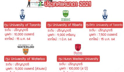นักศึกษานักเรียน อัปเดต 5 ทุนเรียนต่อประเทศแคนาดา ปี 2021 EZ Webmaster December 30, 2020 สำหรับคนที่สนใจไปศึกษาต่อที่ประเทศแคนาดา วันนี้เราได้รวบรวมทุนการศึกษาสำหรับการไปเรียนต่อที่ประเทศแคนาดา ประจำปีการศึกษา 2021 ซึ่งเปิดรับสมัครตั้งแต่ปี 2020 ถึงต้นปี 2021 มาฝากกันค่ะ ทุน University of Toronto ทุนระดับปริญญาตรีในสาขาต่าง ๆ…