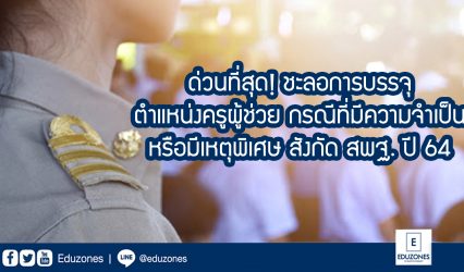ครู-อาจารย์ ด่วนที่สุด! ชะลอการบรรจุตำแหน่งครูผู้ช่วย กรณีที่มีความจำเป็นหรือมีเหตุพิเศษ สังกัด สพฐ. ปี 64 EZ Webmaster December 30, 2020 เมื่อวันที่ 30 ธันวาคม 2563 ที่ผ่านมา ทางสำนักงานคณะกรรมการการศึกษาขั้นพื้นฐาน ได้ส่งหนังสือถึงศึกษาธิการจังหวัด เรื่อง ชะลอการดำเนินการคัดเลือกบุคคลเพื่อบรรจุและแต่งตั้งเข้ารับราชการเป็นข้าราชการครูและบุคลากรทางการศึกษา ตำแหน่งครูผู้ช่วย คณีที่มีความจำเป็นหรือมีเหตุพิศษ สังกัดสำนักงานคณะกรรมการการศึกษาขั้นพื้นฐาน ปี พ.ศ. 2564 โดยมีรายละเอียด…