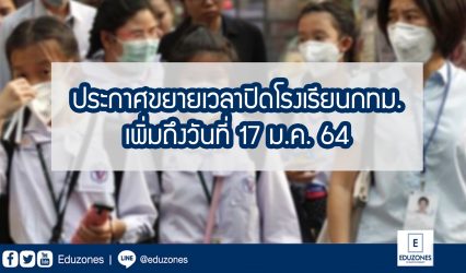 ข่าวเด่น! ประกาศขยายเวลาปิดโรงเรียนกทม. เพิ่มถึงวันที่ 17 ม.ค. 64 EZ Webmaster January 1, 2021 ประกาศขยายเวลาปิดโรงเรียนสังกัด กทม. เพิ่มเนื่องจากการระบาดของ COVID-19 ตั้งแต่วันที่ 4-17 มกราคม 2564 เมื่อวันที่ 23 ธันวาคม พ.ศ. 2563 ทางสำนักการศึกษาได้ประกาศ เรื่องปิดสถานศึกษาชั่วคราวเนื่องจากเหตุพิเศษ…