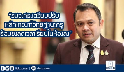 นักเรียนครู-อาจารย์ รมว.ศธ.เตรียมปรับหลักเกณฑ์วิทยฐานะครู พร้อมชงลดเวลาเรียนในห้องลง EZ Webmaster December 21, 2020 รมว.ศึกษาธิการเตรียมปรับหลักเกณฑ์วิทยฐานะครู พร้อมชงครม.ลดชั่วโมงเรียน เพิ่มเวลาทำกิจกรรมนอกห้องเรียนเพื่อตอบโจทย์การเรียนการสอนและทักษะในอนาคต เมื่อวันที่ 21 ธันวาคม 2563 รัฐมนตรีว่าการกระทรวงศึกษาธิการ นายณัฏฐพล ทีปสุวรรณ เปิดเผยว่าในปีการศึกษา 2564 นี้ จะมีการปรับลดภาระงานครูและปรับปรุงหลักเกณฑ์การขอมีและเลื่อนวิทยฐานะสำหรับครูเนื่องจากตลอดระยะเวลา 1…
