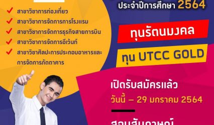 Blogทุนดีดี คณะการท่องเที่ยวฯ มหาวิทยาลัยหอการค้าไทย เปิดรับสมัครทุนรัตนมงคล’2564 tui sakrapee December 16, 2020 คณะการท่องเที่ยวและอุตสาหกรรมการบริการ มหาวิทยาลัยหอการค้าไทย เปิดรับสมัครทุนการศึกษา ประจำปีการศึกษา 2564 เฟ้นหานักศึกษาเรียนดี กิจกรรมเด่น มีความสามารถ ชิงทุนการศึกษากว่า 40 จาก 5 สาขาวิชาสุดฮิตที่ตอบโจทย์ทุกธุรกิจบริการในยุค New Normal สาขาวิชาการท่องเที่ยว สาขาวิชาการจัดการการโรงแรม…