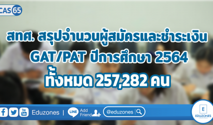 ข่าวเด่นนักเรียน จำนวนผู้สมัครและชำระเงิน GAT/PAT 64 EZ Webmaster December 9, 2020 สทศ. สรุปจำนวนผู้สมัครและชำระเงิน GAT/PAT 64 ทั้งหมด 257,282 คน น้องๆ #dek64 เตรียมตัวให้ดี ขั้นตอนต่อไปคือการประกาศเลขที่นั่งสอบ ในวันที่ 4 ม.ค. 64 และจัดสอบ…
