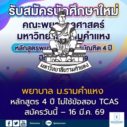 EZ Webmaster February 27, 2026 เปิดรับแล้ว! พยาบาล ม.รามคำแหง หลักสูตร 4 ปี จัดสอบเอง ไม่ใช้ข้อสอบกลาง EZ Webmaster February 27, 2026 เปิดรับแล้ว! พยาบาล ม.รามคำแหง หลักสูตร 4 ปี จัดสอบเอง ไม่ใช้ข้อสอบกลาง มหาวิทยาลัยรามคำแหง เปิดรับสมัครนักศึกษาใหม่ หลักสูตรพยาบาลศาสตรบัณฑิต (4 ปี) โดย ไม่ใช้คะแนนสอบ TCAS ผู้สมัครจะต้องผ่านการสอบข้อเขียนและสอบสัมภาษณ์ตามเกณฑ์ของคณะโดยตรง 📅 กำหนดการสำคัญ เปิดรับสมัคร : วันนี้ – 16 มีนาคม 2569 ค่าสมัคร : 200 บาท ประกาศผล :… Continue Reading
