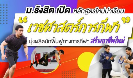 นักเรียน หลักสูตรใหม่น่าเรียน ม.รังสิต เปิด “เวชศาสตร์การกีฬา” มุ่งผลิตนักฟื้นฟูทางการกีฬา สร้างอาชีพใหม่ EZ Webmaster November 26, 2020 คณะกายภาพบำบัดและเวชศาสตร์การกีฬา มหาวิทยาลัยรังสิต เปิดหลักสูตรเวชศาสตร์การกีฬา (Sports Medicine) มุ่งสร้างนักฟื้นฟูทางการกีฬาให้เป็นอาชีพใหม่ ช่วยฟื้นฟูนักกีฬาที่ได้รับการบาดเจ็บทางการกีฬาหรือหลังผ่าตัดจากการบาดเจ็บจากการเล่นกีฬาให้สามารถกลับมาเล่นกีฬาได้ใหม่และมีประสิทธิภาพสูงสุด ด้วยศาสตร์ความรู้พื้นฐานทางการแพทย์ การออกกำลังกายเพื่อการฟื้นฟู สารอาหารเพื่อการรักษา เทคนิคการโค้ช รวมถึงการฝึกปฏิบัติงานจริงในสถานบริการชั้นนำทั้งในและต่างประเทศ ดร.วรชาติ เฉิดชมจันทร์ คณบดีคณะกายภาพบำบัดและเวชศาสตร์การกีฬา มหาวิทยาลัยรังสิต…
