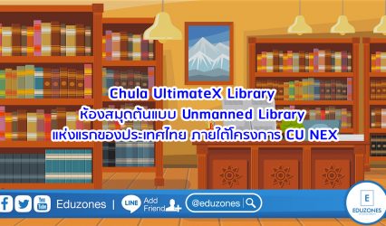 นักเรียนนักศึกษา Chula UltimateX Library ห้องสมุดต้นแบบ Unmanned Library แห่งแรกของประเทศไทย ภายใต้โครงการ CU NEX EZ Webmaster November 26, 2020 สำนักงานวิทยทรัพยากร จุฬาลกรณ์มหาวิทยาลัย โดยการสนับสนุนของธนาคารกสิกรไทย ภายใต้โครงการ CU NEXจัดพิธีเปิด Chula Ultimatex Libray ห้องสมุตที่ให้บริการในรูปแบบ Unmanned Library แห่งแรกของประเทศไทย ณ บริวณชั้น 2…