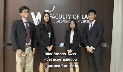 Blogนักศึกษา นิสิตนิติศาสตร์ จุฬาฯ คว้ารางวัลการแข่งขันกฎหมายระดับนานาชาติ tui sakrapee November 25, 2020 นิสิตคณะนิติศาสตร์ จุฬาฯ คว้ารางวัลรองชนะเลิศอันดับที่ 3 จากเวทีการแข่งขันกฎหมายระดับนานาชาติ The19th Intercollegiate Negotiation Competition โดยมีมหาวิทยาลัยชั้นนำระดับโลกต่างส่งทีมเข้าร่วมแข่งขัน รวมผู้แข่งขันกว่า 300 คน การแข่งขันครั้งนี้จัดโดย Intercollegiate…