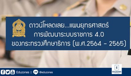 ครู-อาจารย์ ดาวน์โหลดเลย…แผนยุทธศาสตร์การพัฒนาระบบราชการ 4.0 ของกระทรวงศึกษาธิการ (พ.ศ. 2564 – 2565) EZ Webmaster November 25, 2020 นายณัฏฐพล ทีปสุวรรณ รัฐมนตรีว่าการกระทรวงศึกษาธิการ ประกาศแผนยุทธศาสตร์การพัฒนาระบบราชการ 4.0 ของกระทรวงศึกษาธิการ (พ.ศ.2564 – 2565) เพื่อใช้เป็นกรอบแนวทางในการขับเคลื่อนองค์กรเข้าสู่ระบบราชการ 4.0 สำหรับแผนยุทธศาสตร์การพัฒนาระบบราชการเป็นแผนระดับที่ 3 ของกระทรวงศึกษาธิการตามแนวทางของสำนักงานสภาพัฒนาการเศรษฐกิจและสังคมแห่งชาติ เพื่อใช้เป็นเครื่องมือในการกำหนดทิศทางในการพัฒนาระบบราชการของกระทรวงศึกษาธิการ ให้สอดคล้องตามเป้าหมายของแผนแม่บทภายใต้ยุทธศาสตร์ชาติ…