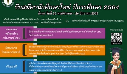 นักเรียนครู-อาจารย์ รับตรง คณะแพทย์ ม.สยาม รอบที่ 1 EZ Webmaster November 24, 2020 ด้วยคณะแพทย์ ม.สยาม กำลังเปิดรับสมัครบุคคลเพื่อคัดเลือกเข้าศึกษาหลักสูตรแพทยศาสตรบัณฑิต ปีการศึกษา 2564 รอบที่ 1 ระหว่างวันที่ 16 พ.ย. – 26 ธ.ค. 63 โดยเปิดรับสมัคร 2 ช่องทาง…
