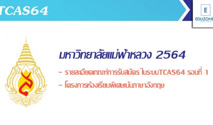 นักเรียนนักศึกษา #TCAS64 ม.แม่ฟ้าหลวง เปิดรับสมัครนศ.ป.ตรี โครงการห้องเรียนพิเศษเน้นภาษาอังกฤษ ตั้งแต่วันที่ 5-20 ม.ค. 64 EZ Webmaster November 17, 2020 มหาวิทยาลัยแม่ฟ้าหลวง เปิดรับสมัครคัดเลือกบุคคลเพื่อเข้าศึกษาต่อในระดับปริญญาตรี รอบที่ 1 โครงการห้องเรียนพิเศษเน้นภาษาอังกฤษ ประจำปีการศึกษา 2564 โดยจะเปิดรับสมัครตั้งแต่วันที่ 5-20 มกราคม 2564 สาขาที่เปิดรับสมัคร -จำนวน 26 สาขา…