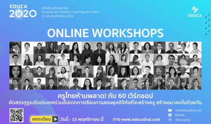 ครู-อาจารย์ โค้งสุดท้าย! ห้ามพลาดลงทะเบียนงาน EDUCA 2020 พบ 60 กว่าหัวข้อเวิร์คชอปสุดปังช่วยอัปเกรดวิชาชีพครู EZ Webmaster November 11, 2020 EDUCA 2020 ยกทัพขบวนเวิร์คชอป 60 กว่าหัวข้อเสิร์ฟครูไทย จัดครบเนื้อหาทุกมิติของการพัฒนาวิชาชีพครู ทั้งการเรียนรู้ในยุคดิจิทัล-การพัฒนาสมรรถนะ-จิตวิทยา-เครือข่ายด้านการศึกษา เน้นปรับใช้ได้จริงในยุค New Normal โดยจะได้พบกับคณาจารย์ ครูผู้มีประสบการณ์สร้างความสำเร็จในห้องเรียน และครูรุ่นใหม่ที่มาร่วมแชร์องค์ความรู้แบบเต็มอิ่มในวันที่ 25-26 พ.ย.นี้ ดร.นิภาพร กุลสมบูรณ์ ผู้เชี่ยวชาญด้านการศึกษา บริษัท ปิโก (ไทยแลนด์) จำกัด (มหาชน) กล่าวว่า มหกรรมทางการศึกษาเพื่อพัฒนาวิชาชีพครูครั้งที่…