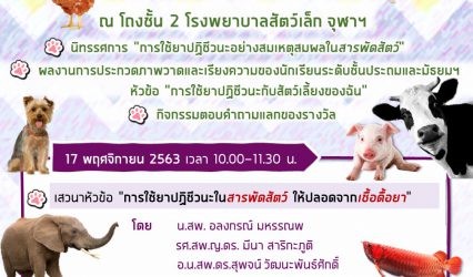 Blogกิจกรรม สัตวแพทยศาสตร์ จุฬาฯ ชวนร่วมงานสัปดาห์รู้รักษ์ตระหนักใช้ยาปฏิชีวนะ tui sakrapee November 4, 2020 คณะสัตวแพทยศาสตร์ จุฬาลงกรณ์มหาวิทยาลัย ขอเชิญร่วมงานสัปดาห์รู้รักษ์ตระหนักใช้ยาปฏิชีวนะ (work Antibiotic Awareness Week) ระหว่างวันที่ 16 – 18 พฤศจิกายน 2563 ณ โถงชั้น 2…