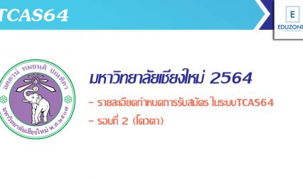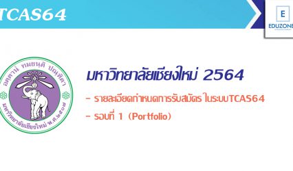 นักศึกษานักเรียน #TCAS64 มาแล้ว! ม.เชียงใหม่ ประกาศปฏิทินการรับสมัคร รอบที่ 1 (Portfolio) EZ Webmaster November 4, 2020 มหาวิทยาลัยเชียงใหม่ เผยระเบียบและปฏิทินการคัดเลือกการรับสมัครบุคคลเพื่อเข้าศึกษาต่อในระดับปริญญาตรี รอบที่ 1 (Portfolio) ประจำปีการศึกษา 2564 โดยมีรายละเอียดการรับสมัคร ดังนี้ ประเภทโครงการที่ดำเนินการโดยสำนักทะเบียนและประมวลผล จำนวนรับ -จำนวน 1,436 ที่นั่ง กำหนดการรับสมัคร…