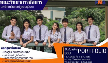 Blogนักเรียน บริหาร บัญชี นิเทศ หรือเศรษฐศาสตร์ ที่นี่มีให้ครบ “วิทยาการจัดการ สวนสุนันทา” ยื่นPortfolioได้แล้ววันนี้ tui sakrapee November 4, 2020 คณะวิทยาการจัดการ มหาวิทยาลัยราชภัฏสวนสุนันทา เปิดรับสมัครนักศึกษาใหม่ ระดับปริญญาตรี ภาคปกติ ประจำปีการศึกษา 2564 (รอบที่ 1 Portfolio) สาขาวิชาที่เปิดรับสมัครบุคคลเพื่อคัดเลือกเข้าศึกษา -หลักสูตรบริหารธุรกิจบัณฑิต -หลักสูตรบัญชีบัณฑิต -หลักสูตรเศรษฐศาสตรบัณฑิต -หลักสูตรนิเทศศาสตรบัณฑิต สามารถดูรายละเอียดคุณสมบัติแต่ละสาขาวิชาได้แล้ววันนี้ที่เว็บไซต์…