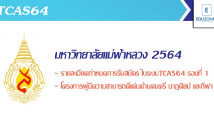 นักศึกษานักเรียน #TCAS64 ม.แม่ฟ้าหลวง เปิดรับนศ.ป.ตรี โครงการผู้มีความสามารถดีเด่น ด้านดนตรี นาฏศิลป์ และกีฬา ตั้งแต่วันที่ 5-20 ม.ค. 64 EZ Webmaster November 4, 2020 มหาวิทยาลัยแม่ฟ้าหลวง เปิดรับสมัครคัดเลือกบุคคลเพื่อเข้าศึกษาต่อในระดับปริญญาตรี รอบที่ 1 โครงการผู้มีความสามารถดีเด่น ด้านดนตรี นาฏศิลป์ และกีฬา ประจำปีการศึกษา 2564 โดยจะเปิดรับสมัครตั้งแต่วันที่ 5-20 มกราคม 2564 …