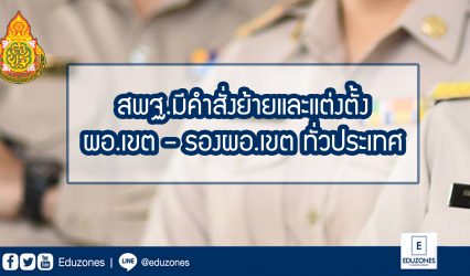 ครู-อาจารย์ สพฐ. มีคำสั่งย้ายและแต่งตั้ง ผอ.เขต – รองผอ.เขต ทั่วประเทศ EZ Webmaster November 1, 2020 สำนักงานคณะกรรมการการศึกษาขั้นพื้นฐาน มีคำสั่งย้ายและแต่งตั้งผู้อำนวยเขต – รองผู้อำนวยการเขต ทั่วประเทศ โดยมีโดยสรุปรายละเอียดได้ดังนี้คือ ที่ ศธ 04009/ว 953 แต่งตั้งข้าราชการครูและบุคลากรทางการศึกษาให้ดำรงตำแหน่งผู้อำนวยการสำนักงานเขตพื้นที่การศึกษาและตำแหน่งรองผู้อำนวยการสำนักงานเขตพื้นที่การศึกษา โดยมีคำสั่งย้ายผู้อำนวยการสำนักงานเขตพื้นที่การศึกษา 50 ราย บรรจุและแต่งตั้ง ผู้อำนวยการสำนักงานเขตพื้นที่การศึกษา…
