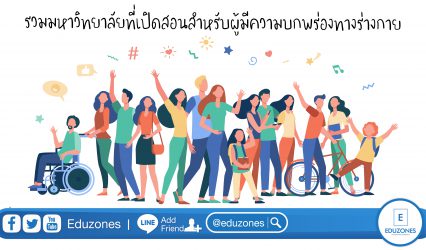 นักเรียน รวมมหาวิทยาลัยที่เปิดสอนสำหรับผู้มีความบกพร่องทางร่างกาย EZ Webmaster October 29, 2020 วันนี้พี่มีเรื่องราวดี ๆ จะมาบอกต่อน้อง ๆ ที่มีความบกพร่องทางร่างกาย ที่มีความใฝ่ฝันที่อยากจะเรียนต่อมหาวิทยาลัย วันนี้พี่เลยรวบรวมมหาวิทยาลัยที่เปิดรับมาฝากน้อง ๆ กัน พร้อมแล้วมาดูกันเลย จุฬาลงกรณ์มหาวิทยาลัย จะเปิดรับสมัครรอบปกติของมหาวิทยาลัย ในโครงการพัฒนาอัจฉริยภาพทางวิทยาศาสตร์และเทคโนโลยีสำหรับเด็กและเยาวชน คณะวิศวกรรมศาสตร์ สำหรับสิ่งอำนวยความสะดวกแก่นักศึกษาผู้พิการ เช่น…