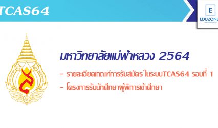 นักเรียนนักศึกษา #TCAS64 ม.แม่ฟ้าหลวง เปิดรับสมัครนศ.ป.ตรี โครงการรับนักเรียนผู้พิการเข้าศึกษา ตั้งแต่วันที่ 5 ม.ค. 64 EZ Webmaster October 30, 2020 มหาวิทยาลัยแม่ฟ้าหลวง เปิดรับสมัครคัดเลือกบุคคลเพื่อเข้าศึกษาต่อในระดับปริญญาตรี รอบที่ 1 โครงการรับนักศึกษาผู้พิการเข้าศึกษา ประจำปีการศึกษา 2564 โดยจะเปิดรับสมัครตั้งแต่วันที่ 5 มกราคม 2564 จำนวนรับ -78 ที่นั่ง …