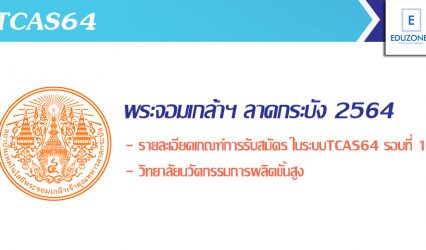 นักศึกษานักเรียน #TCAS64 วิทยาลัยนวัตกรรมการผลิตขั้นสูง ลาดกระบัง เปิดรับสมัครนศ.ป.ตรี ตั้งแต่วันที่ 2 พ.ย. – 21 ธ.ค. นี้ EZ Webmaster October 26, 2020 วิทยาลัยนวัตกรรมการผลิตขั้นสูง สถาบันเทคโนโลยีพระจอมเกล้าเจ้าคุณทหารลาดกระบัง จะเปิดรับสมัครคัดเลือกบุคคลเข้าศึกษาต่อระดับปริญญาตรี หลักสูตรวิศวกรรมศาสตรบัณฑิต (วศ.บ) สาขาวิชาวิศวกรรมระบบการผลิต แบบ Portfolio รอบที่ 1 ตั้งแต่วันที่ 2 พฤศจิกายน – 21 ธันวาคม 2563…