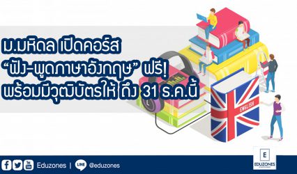 Blog ม.มหิดล เปิดคอร์ส “ฟัง-พูดภาษาอังกฤษ” ฟรี! พร้อมมีวุฒิบัตรให้ ถึง 31 ธ.ค.นี้ EZ Webmaster October 25, 2020 มหาวิทยาลัยมหิดล เปิดสอนคอร์ส “การฟัง และ พูด ภาษาอังกฤษเพื่อการสื่อสาร” (Listening and Speaking for Communication) ฟรี ไม่มีค่าใช้จ่าย สำหรับผู้ที่สนใจสามารถเข้าไปลงทะเบียนและเข้าเรียนฟรีได้ทันทีถึงวันที่ 31…