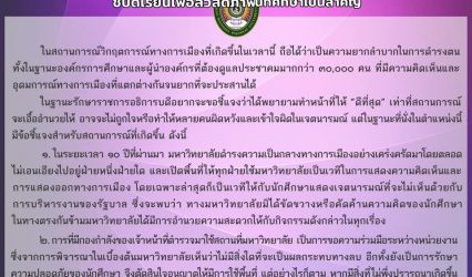 Blogครู-อาจารย์ “สวนสุนันทา”ยันเป็นกลางทางการเมืองอย่างเคร่งครัด ชี้ปิดเรียนเพื่อสวัสดิภาพนักศึกษาเป็นสำคัญ tui sakrapee October 15, 2020 รองศาสตราจารย์ ดร.ชุติกาญจน์ ศรีวิบูลย์ รักษาราชการแทนอธิการบดี มหาวิทยาลัยราชภัฏสวนสุนันทา แจงพยายามทําหน้าที่ให้ “ดีที่สุด” ในสถานการณ์ที่วิกฤตจากความเห็นต่างทางการเมืองของประชาคมกว่า 30,000 คน ยันรักษาความเป็นกลางทางการเมืองอย่างเคร่งครัดตลอดมา ย้ำมหาวิทยาลัยตระหนักในศักดิ์ศรีของนักศึกษาและคำนึงถึงสวัสดิภาพของนักศึกษาเป็นหลัก —————————— ในสถานการณ์วิกฤตการณ์ทางการเมืองที่เกิดขึ้นในเวลานี้ ถือได้ว่าเป็นความยากลำบากในการดำรงตน ทั้งในฐานะองค์กรการศึกษาและผู้นำองค์กรที่ต้องดูแลประชาคมมากกว่า…