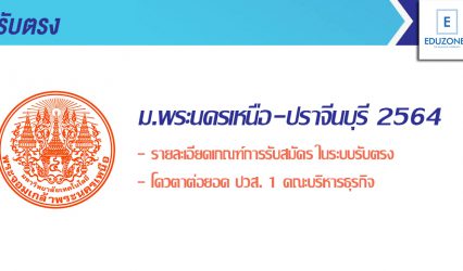 นักศึกษานักเรียน #รับตรง64 คณะบริหารธุรกิจ พระนครเหนือ-ปราจีนบุรี เปิดรับสมัครโควตาต่อยอด ปวส. 1 ตั้งแต่วันที่ 1 ต.ค. – 14 ธ.ค. นี้ EZ Webmaster October 15, 2020 มหาวิทยาลัยเทคโนโลยีพระจอมเกล้าพระนครเหนือ เปิดรับสมัครคัดเลือกบุคคลเพื่อเข้าศึกษาต่อในระดับปริญญาตรี โควตาต่อยอด ปวส. 1 คณะบริหารธุรกิจและอุตสาหกรรมบริการ วิทยาเขตปราจีนบุรี ประจำปีการศึกษา 2564 โดยจะเปิดรับสมัครตั้งแต่วันที่ 1 ตุลาคม – 14 ธันวาคม 2563…