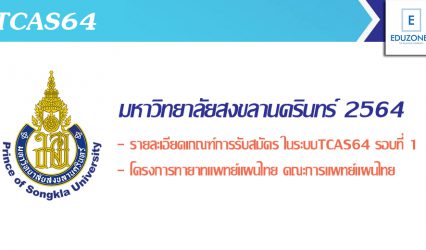 นักศึกษานักเรียน #TCAS64 คณะการแพทย์แผนไทย ม.สงขลานครินทร์ เปิดรับสมัครนศ.ป.ตรี โครงการทายาทแพทย์แผนไทย ปี 64 ตั้งแต่วันที่ 5-14 ม.ค. 64 EZ Webmaster October 12, 2020 มหาวิทยาลัยสงขลานครินทร์ เปิดรับสมัครคัดเลือกบุคคลเพื่อเข้าศึกษาต่อในระดับปริญญาตรี รอบที่ 1 โครงการทายาทแพทย์แผนไทย คณะการแพทย์แผนไทย ประจำปีการศึกษา 2564 โดยเปิดรับสมัครตั้งแต่วันที่ 5-14 มกราคม 2564 จำนวนรับ -140 ที่นั่ง…