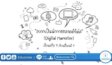นักเรียน “อยากเป็นนักการตลาดดิจิทัล” เรียนอะไร? เรียนที่ไหนดี? EZ Webmaster October 11, 2020 ถ้าพูดถึงอาชีพที่กำลังมาแรงในตอนนี้ อาชีพนักการตลาดดิจิทัลก็เป็นอีกหนึ่งอาชีพที่ไม่พูดถึงก็คงไม่ได้ เพราะปัจจุบันเทคโนโลยีทันสมัยมาก การที่จะทำธุรกิจบนโลกออนไลน์ก็ต้องคอยมีนักการตลาดดิจิทัลนี่แหละที่คอยดูพฤติกรรมของผู้บริโภคและทำการสื่อสารให้ตรงกับกลุ่มเป้าหมาย การตลาด (Marketing) เป็นงานที่รวมศาสตร์ และศิลป์เข้าไว้ด้วยกัน โดยมีจุดมุ่งหมายหลักอยู่ที่การทำให้สินค้า หรือบริการติดตลาด เป็นที่รู้จักของกลุ่มลูกค้า และงานด้านการตลากเป็นงานที่มีการแข่งขันค่อนข้างสูง ฉะนั้นน้อง ๆ คนไหนที่สนใจด้านการตลาด ควรจะเป็นคนที่มีไหวพริบดี…