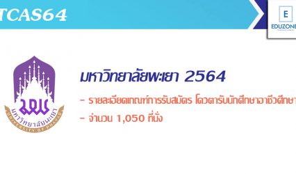 นักเรียนนักศึกษา #TCAS64 ม.พะเยา เปิดรับสมัครนศ. โควตาผลิตบุคลากรทางวิทยาศาสตร์สุขภาพ ตั้งแต่วันที่ 1 ธ.ค. 63 – 15 ม.ค. 64 EZ Webmaster October 4, 2020 มหาวิทยาลัยพะเยา เปิดรับสมัครเพื่อคัดเลือกบุคคลเข้าศึกษาต่อระดับปริญญาตรี โครงการรับตรงมหาวิทยาลัยพะเยา (โควตาบุคลากรทางวิทยาศาสตร์สุขภาพ) ประจำปีการศึกษา 2564 โดยจะเปิดรับสมัครตั้งแต่วันที่ 1 ธันวาคม 2563 – 15 มกราคม 2564 จำนวนรับ…