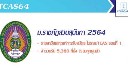 นักศึกษานักเรียน #TCAS64 กำหนดการรับสมัคร และจำนวนรับ ม.ราชภัฏสวนสุนันทา (รวมทุกศูนย์) ประจำปี 2564 EZ Webmaster October 1, 2020 มหาวิทยาลัยราชภัฏสวนสุนันทา เผยกำหนดการรับสมัคร และจำนวนรับนักศึกษาระดับปริญญาตรี ภาคปกติ(รวมทุกศูนย์) รอบที่ 1 (Portfolio) ประจำปีการศึกษา 2564 โดยมีรายละเอียด ดังนี้ กำหนดการ -เปิดรับสมัครทางอินเตอร์เน็ต ตั้งแต่วันที่ 1…