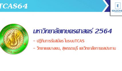 นักเรียนนักศึกษา เช็ก! ปฏิทิน TCAS ม.เกษตรศาสตร์ ปี 2564 EZ Webmaster September 30, 2020 มหาวิทยาลัยเกษตรศาสตร์ ประกาศกำหนดการการรับสมัครเข้าศึกษาต่อระดับปริญญาตรี ระบบ TCAS64 ประจำปีการศึกษา 2564 โดยมีรายละเอียดดังนี้ (ปฏิทินการรับสมัครนี้เฉพาะมหาวิทยาลัยเกษตรศาสตร์ บางเขน, วิทยาเขตสุพรรณบุรี และวิทยาลัยการชลประทาน วิทยาเขตอื่นให้ติดตามแยกอีกครั้ง) กำหนดการ รอบที่ 1…