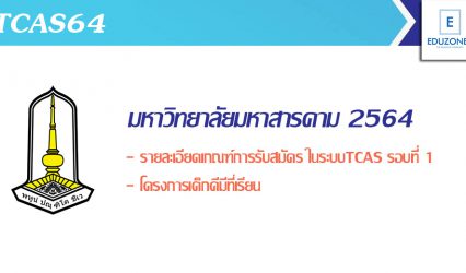 นักเรียนนักศึกษา #TCAS64 ม.มหาสารคาม เปิดรับโครงการเด็กดีมีที่เรียน รอบที่ 1 Portfolio ตั้งแต่วันที่ 26 ต.ค.-6 พ.ย.นี้ EZ Webmaster September 29, 2020 มหาวิทยาลัยมหาสารคาม เปิดรับสมัครคัดเลือกบุคคลเข้าศึกษาต่อในระดับปริญญาตรี รอบที่ 1 (Portfolio) โครงการส่งเสริมนักเรียนผู้มีคุณธรรม จริยธรรมและบำเพ็ญประโยชน์ (โครงการเด็กดีมีที่เรียน) ประจำปีการศึกษา 2564 ตั้งแต่วันที่ 26 ตุลาคม – 6 พฤศจิกายน…