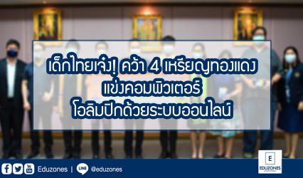 Blog เด็กไทยเจ๋ง! คว้า 4 เหรียญทองแดง แข่งคอมพิวเตอร์โอลิมปิกด้วยระบบออนไลน์ EZ Webmaster September 24, 2020 ผู้อำนวยการสถาบันส่งเสริมการสอนวิทยาศาสตร์และเทคโนโลยี (สสวท.) ศาสตราจารย์ ดร.ชูกิจ ลิมปิจำนงค์ เปิดเผยว่าตามที่ได้คัดเลือกและจัดส่งผู้แทนประเทศไทยไปแข่งขันคณิตศาสตร์ วิทยาศาสตร์โอลิมปิกระหว่างประเทศ ปี พ.ศ. 2563ตามรูปแบบที่ประเทศเจ้าภาพจัดการแข่งขันได้ปรับตามสถานการณ์การแพร่ระบาดของโรคติดเชื้อไวรัสโคโรน่า 2019โดยเข้าร่วมการแข่งขันผ่านระบบออนไลน์จากประเทศไทยนั้น ในปีนี้ประเทศไทยได้ส่งผู้แทนจำนวน 4 คน เข้าร่วมการแข่งขันคอมพิวเตอร์โอลิมปิกระหว่างประเทศ (The…