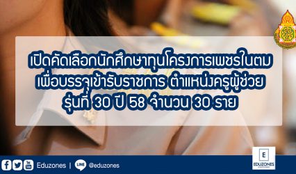 Blog เปิดคัดเลือกนักศึกษาทุนโครงการเพชรในตม เพื่อบรรจุเข้ารับราชการ ตำแหน่งครูผู้ช่วย รุ่นที่ 30 ปี 58 จำนวน 30 ราย EZ Webmaster September 24, 2020 สำนักงานคณะกรรมการการศึกษาขั้นพื้นฐาน (สพฐ.) ส่งหนังสือถึงศึกษาธิการจังหวัด แจ้งเรื่อง การคัดเลือกนักศึกษาทุนโครงการเพชรในตมเพื่อบรรจุและแต่งตั้งเข้ารับราชการเป็นข้าราชการครูและบุคลากรทางการศึกษา ตำแหน่งครูผู้ช่วย รุ่นที่ 30 ปีการศึกษา 2558 โดยมีเนื้อหาดังนี้ ตามหนังสือที่อ้างถึง ได้แจ้งจัดสรรอัตราว่างจากผลการเกษียณข้าราชการครูและบุคลากรทางการศึกษา ตำแหน่งครูผู้สอน เมื่อสิ้นปิ้งบประมาณ…