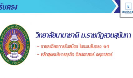 นักศึกษานักเรียน #รับตรง 64 วิทยาลัยนานาชาติ ม.ราชภัฏสวนสุนันทา เปิดรับสมัครตั้งแต่วันที่ 1 ส.ค. เป็นต้นไป EZ Webmaster September 20, 2020 วิทยาลัยนานาชาติ มหาวิทยาลัยราชภัฏสวนสุนันทา เปิดรับนักศึกษาใหม่ ประจำปีการศึกษา 2564 แบบรับตรงผ่านทางวิทยาลัยเอง ตั้งแต่ 1 สิงหาคม 2563 เป็นต้นไป หลักสูตรที่เปิดรับสมัคร -หลักสูตรบริหารธุรกิจบัณฑิต -หลักสูตรศิลปศาสตรบัณฑิต -หลักสูตรครุศาสตรบัณฑิต…