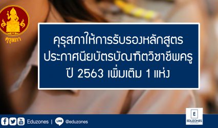 ครู-อาจารย์ คุรุสภาให้การรับรองหลักสูตรประกาศนียบัตรบัณฑิตวิชาชีพครู ปี 2563 เพิ่มเติม 1 แห่ง EZ Webmaster September 1, 2020 คณะกรรมการคุรุสภา มีมติในการประชุม ครั้งที่ 6/2563 เมื่อวันที่ 31 กรกฎาคม 2563 ที่ผ่านมา ในมติการรับรองหลักสูตรประกาศนียบัตรบัณฑิตวิชาชีพครู เพิ่มเติม จำนวน 1 แห่ง ได้แก่…