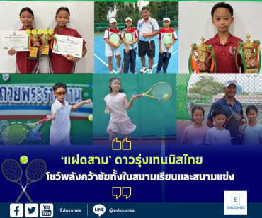 tui sakrapee September 3, 2025 แฝดสามดาวรุ่งเทนนิสไทย โชว์พลังคว้าชัยทั้งในสนามเรียนและสนามแข่ง tui sakrapee September 3, 2025 ถือเป็นโชคหลายชั้นของครอบครัว “นิ่มวชิระสุนทร” จากจุดเริ่มต้นของ สุดยอดคุณพ่อ สุโรจน์ และสุดยอดคุณแม่ กัลยดา ที่ได้ลูกแฝดถึงสามคน คือ น้องจิน-ชัญญา , น้องจอม-กฤษฎิ์ และ น้องแจม-ชญาดา บ่มเพาะด้วยสายใยรักและความอบอุ่นของครอบครัว ก่อนที่ช่วงโควิดที่ผ่านมา คุณพ่อสุโรจน์ จะเล็งหากิจกรรมที่จะทำให้แฝดทั้งสามได้ลดปฏิกิริยาตื่นตัวลงไปได้บ้าง จึงเลือกสนามเทนนิสใกล้บ้าน เป็นสถานที่ปล่อยพลังของน้องแฝดทั้งสาม จากวันนั้น น้องจิน-น้องจอม-น้องแจม ได้เริ่มสัมผัสกับกีฬาเทนนิส ตั้งแต่อายุ 5 ขวบ กับ โค้ชครูป้อม-มีชัย โพธิผ่องพันธ์ ด้วยความตั้งใจของเด็ก ๆ และการสนับสนุนจากผู้ปกครอง แฝดทั้งสาม ได้มีพัฒนาการอย่างรวดเร็ว เริ่มเข้าระบบการแข่งขันตั้งแต่รุ่นอายุ 6 ขวบ ในรายการ tennis… Continue Reading