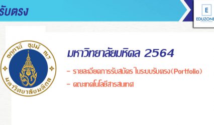 นักศึกษานักเรียน #รับตรง64 คณะเทคโนโลยีสารสนเทศ ม.มหิดล เปิดรับสมัครรอบรับตรง (Portfolio) ตั้งแต่วันที่ 15 ก.ย.- 30 ต.ค.นี้ EZ Webmaster August 17, 2020 คณะเทคโนโลยีสารสนเทศ มหาวิทยาลัยมหิดล เปิดรับสมัครเพื่อคัดเลือกบุคคลเข้าศึกษาต่อระดับปริญญาตรี ประเภทรับตรง Portfolio ประจำปีการศึกษา 2564 ตั้งแต่วันที่ 15 กันยายน – 30 ตุลาคม 2563 …