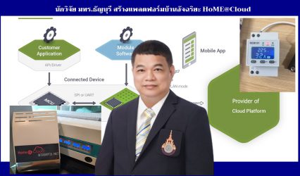 Blogกิจกรรม นักวิจัย มทร.ธัญบุรี สร้างแพลตฟอร์มบ้านอัจฉริยะ HoME@Cloud tui sakrapee August 10, 2020 “หากเทคโนโลยีนี้มีการนำมาใช้จริง ผมเชื่อว่าทำให้เกิดมูลค่าทางเศรษฐกิจมากกว่า 200,000 ล้านบาท จากการเป็นเจ้าของเทคโนโลยีของประเทศ สำหรับการใช้งาน 20 ล้านหลังคาเรือนและในภูมิภาค รวมถึงการมีตลาดส่งออกในภูมิภาคที่อิงมาตรฐานไฟฟ้าจากประเทศไทย สร้าง GDP ต่อปีได้มากกว่า 1%” นักวิจัย มทร.ธัญบุรี รองศาสตราจารย์ ดร.กฤษณ์ชนม์ ภูมิกิตติพิชญ์ รองอธิการบดี มทร.ธัญบุรี…